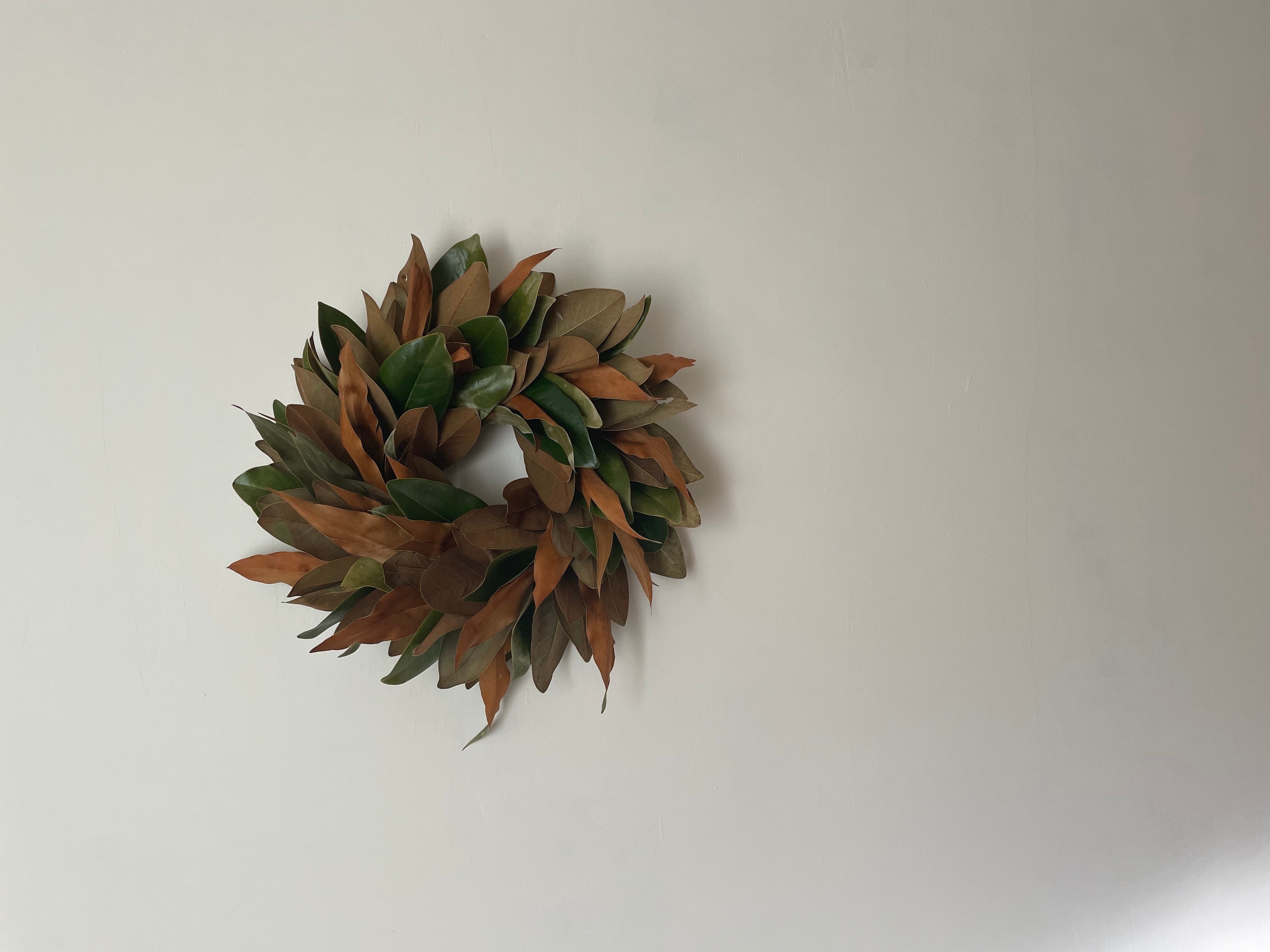泰山木にグレビレアを合わせてシンプルなリースを作りました。