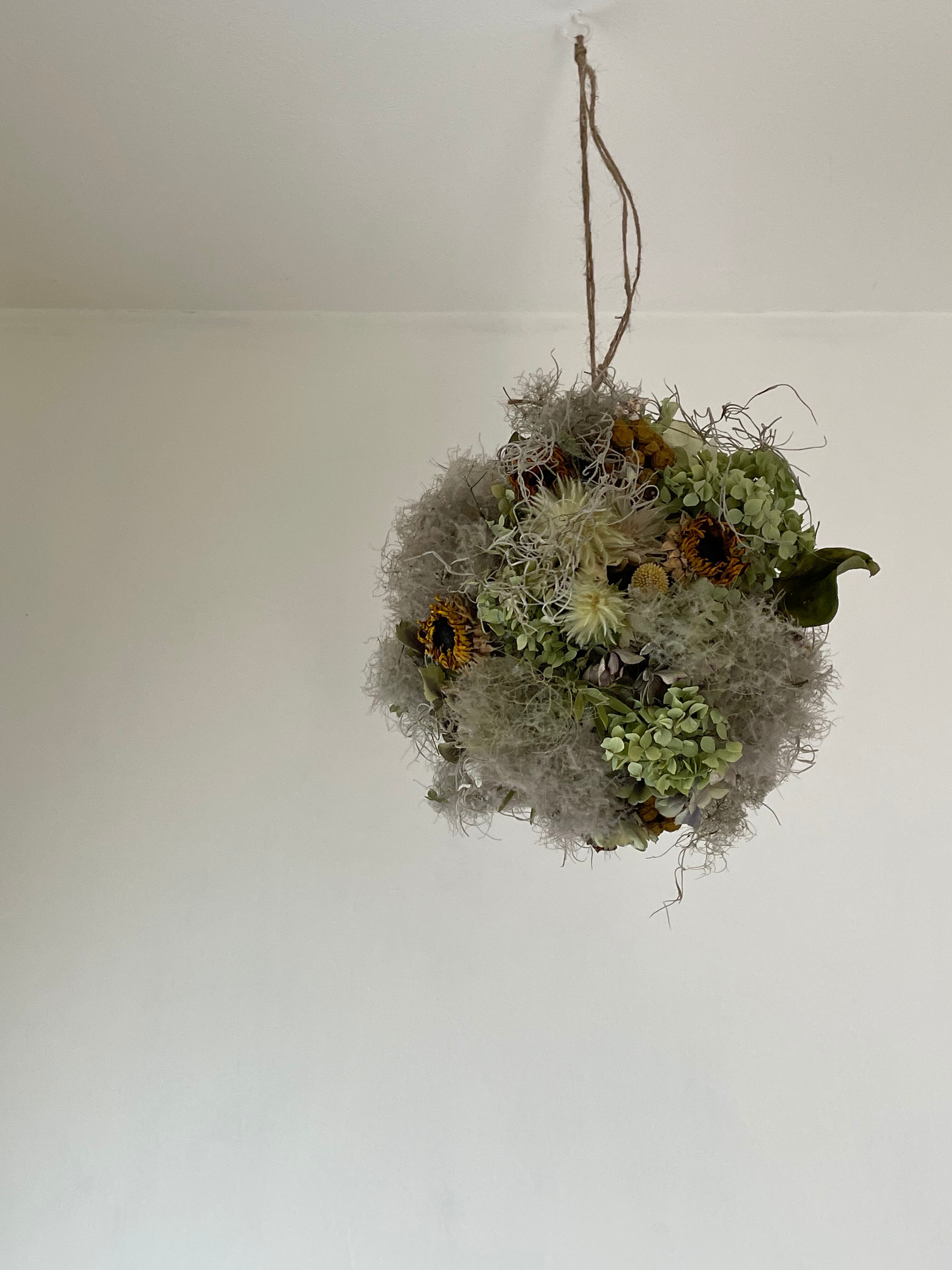 緩衝材をたっぷりと詰めて発送いたしますが、球体のため輸送中に花落ちがあるかもしれません。