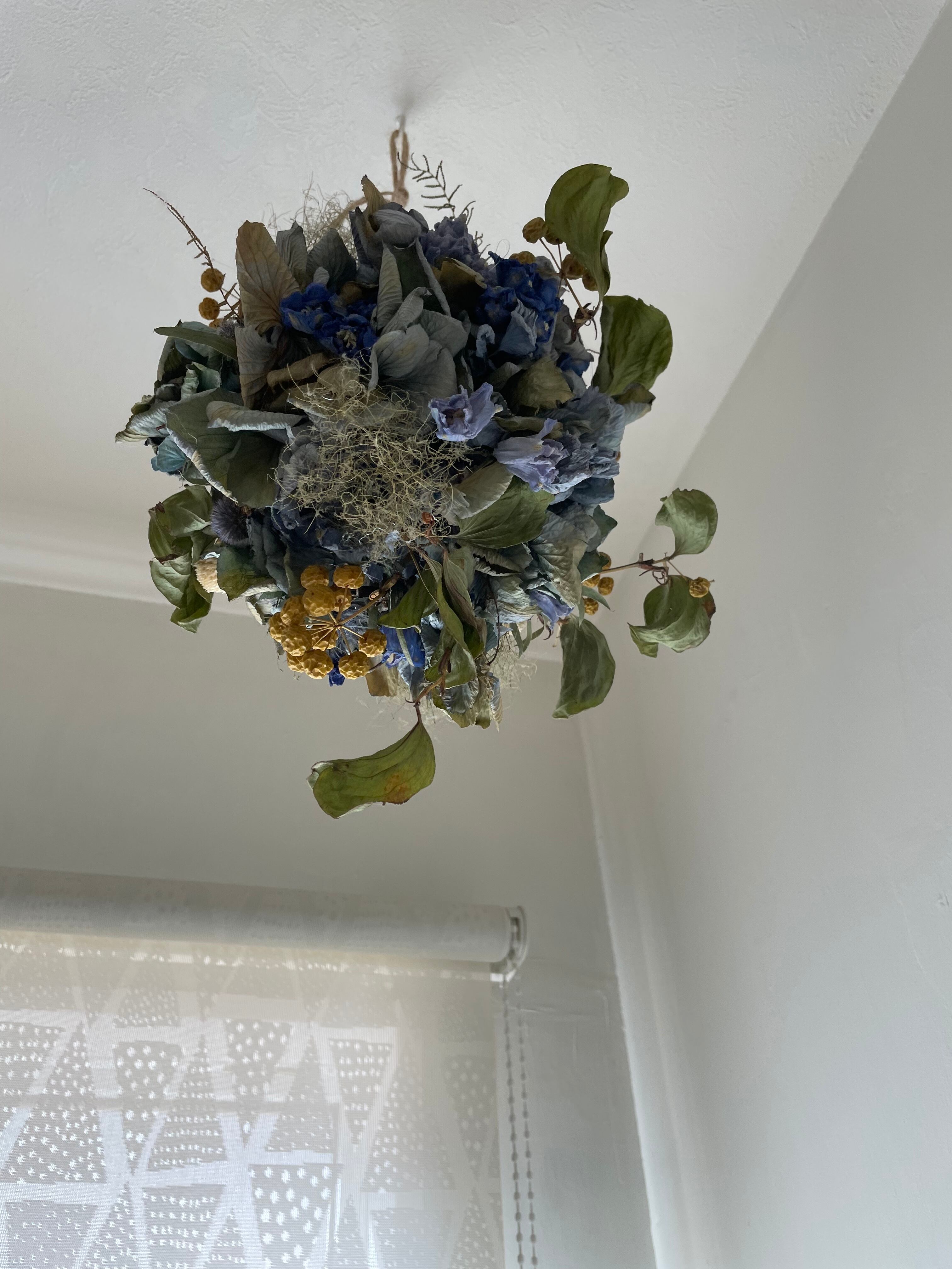 こちらの作品は360度花がついておりますので吊り下げた状態で発送になります。