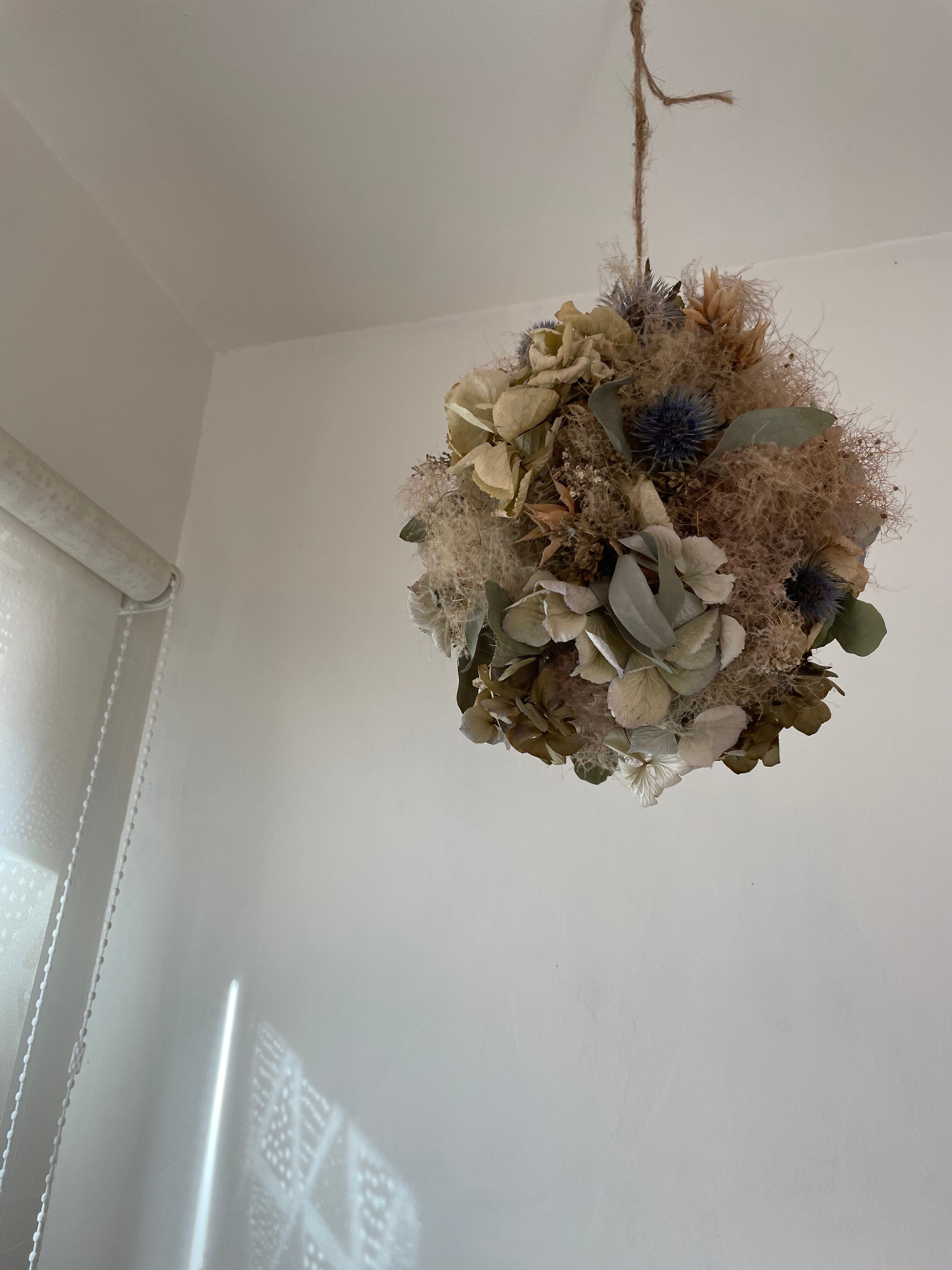 こちらの作品は360度花がついておりますので吊り下げた状態で発送になります。